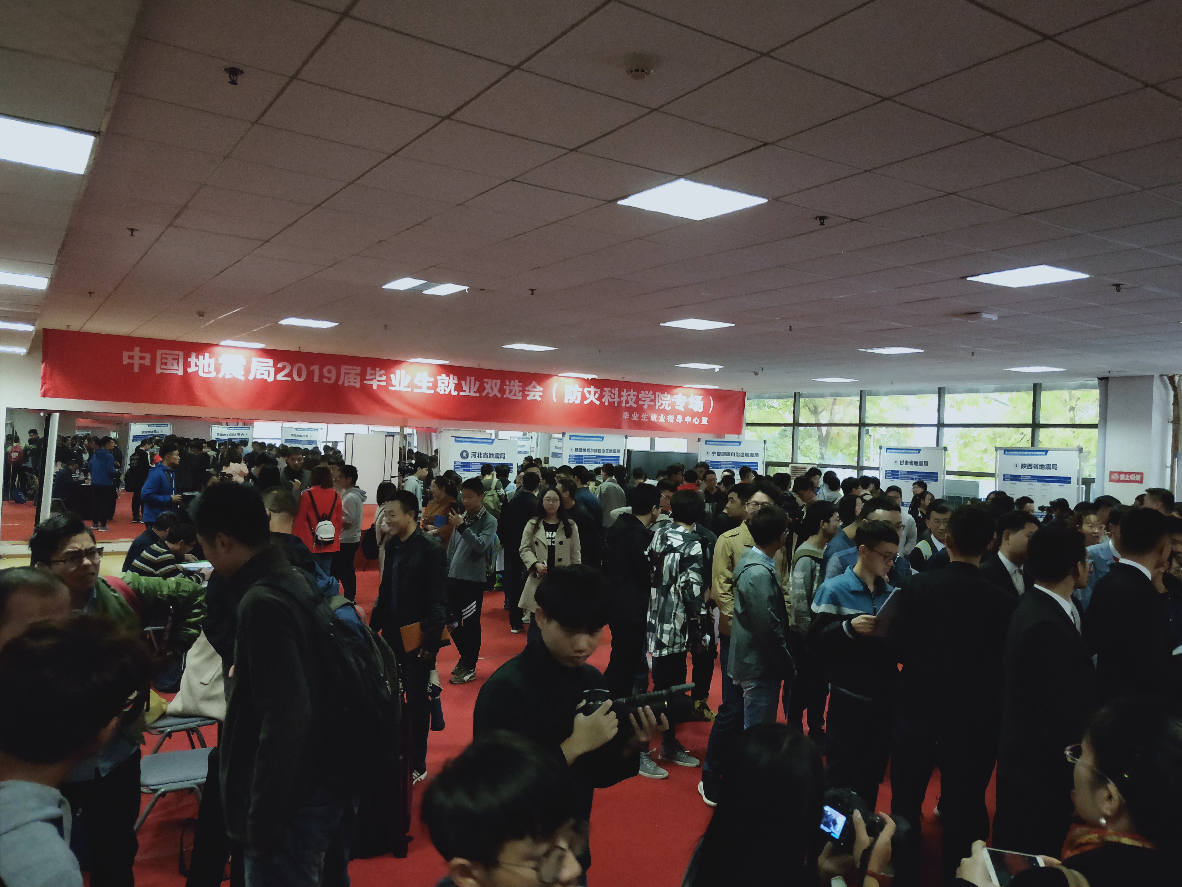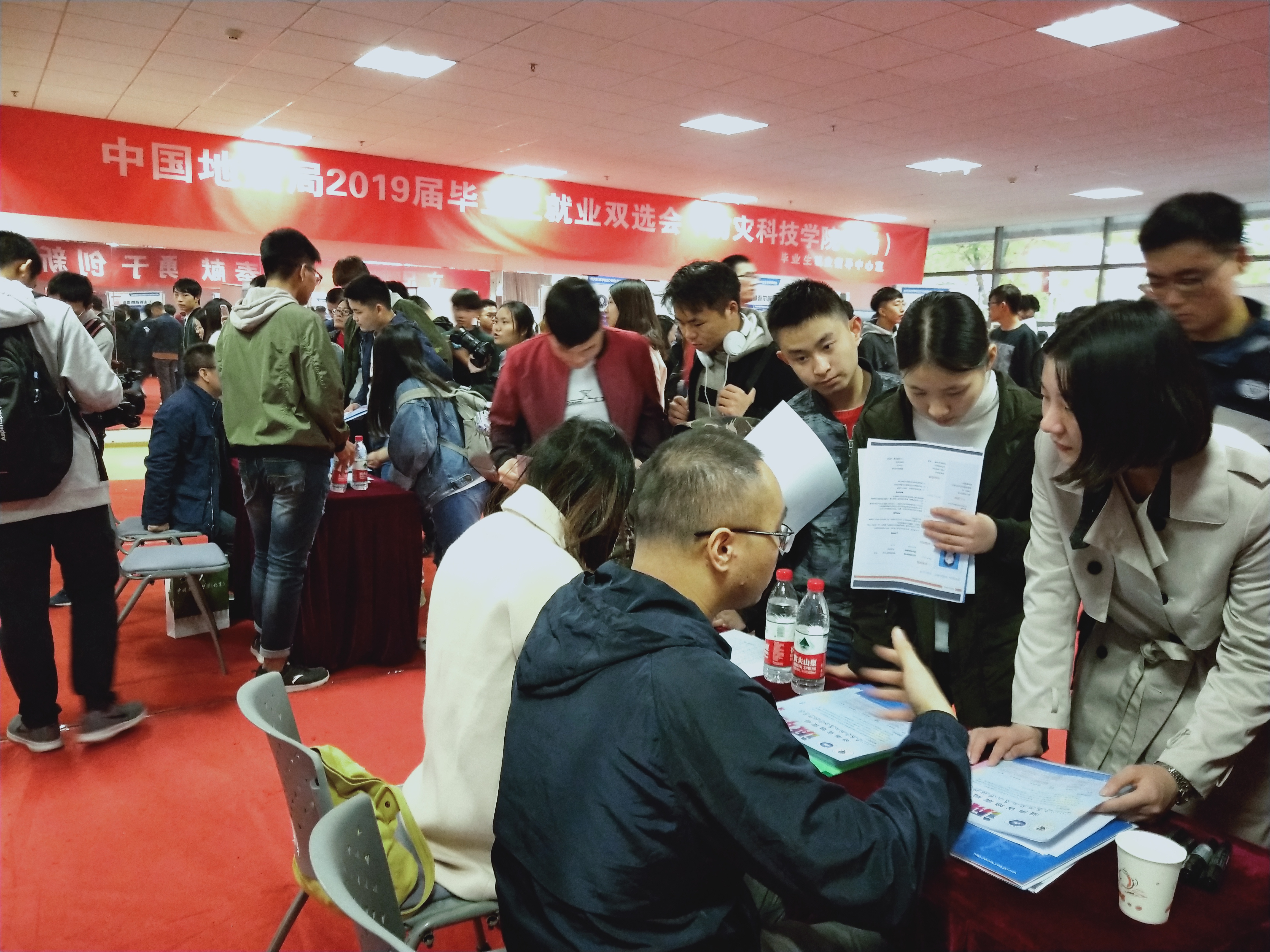 10月25日下午,中国地震局2019届毕业生就业双选会(防灾科技学院专场)在防灾科技学院体育馆健美操教室成功举行,中国地震局人事教育司带领13家省级地震局到校进行2019年度事业人员招聘宣讲,近500名毕业生到现场进行就业咨询。学校党委副书记、纪委书记陈光到场与用人单位、应聘同学亲切交谈,指导学生如何择业就业。学科与研究生处、各二级学院领导、辅导员等学生就业工作人员悉数到场,了解地震系统单位招聘需求,洽谈人才需求和人才培养工作。